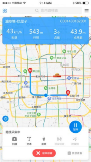 2.巡查道路时,巡查人员可以使用道路长度app,一键将文本、图片、语音等数据上传到云平台。