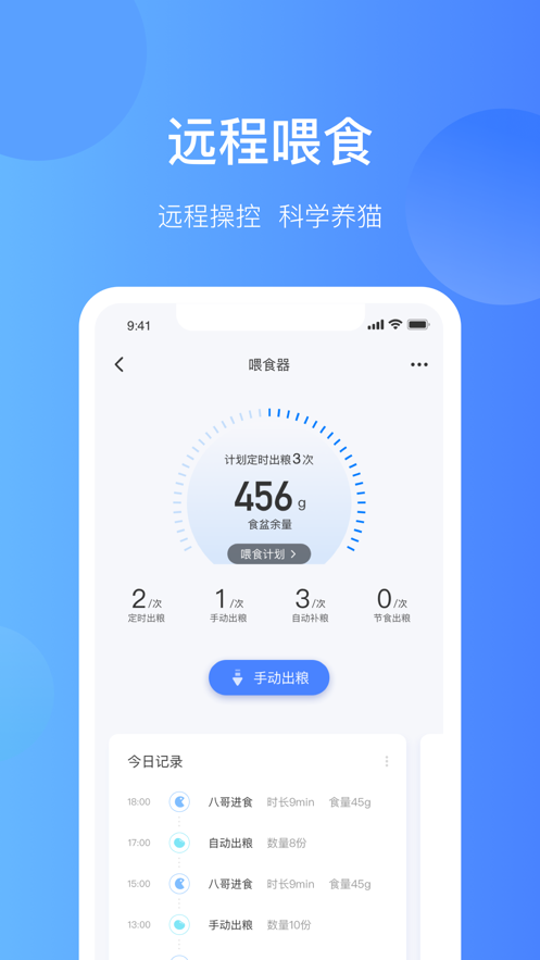 2、可以进行智能检测猫咪是否需要添加粮食和水的信息,平台会及时给你进行推送。