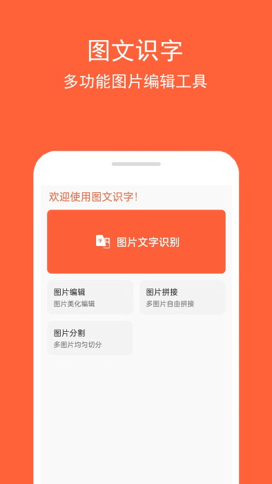 图文识字是一个主打扫描图片文字提取的工具,从图片中提取文字的多功能软件,包含图片文字识别,图片分割,图片编辑,图片拼接。