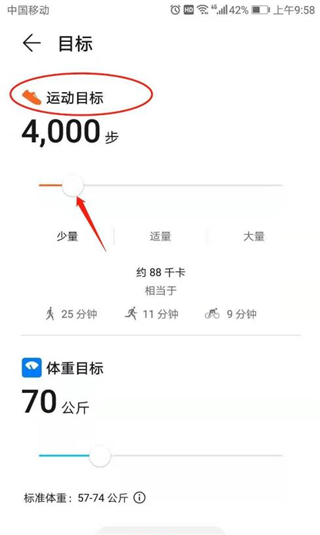 4. 在目标页面,拖动【运动目标】滑块,设定你希望达成的每日步数。