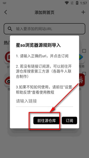 4、在此处设定导入规则的具体内容,然后点击访问源仓库”选项。