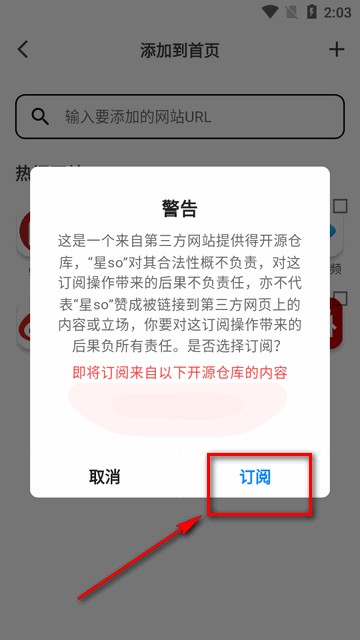 6、选定后点击订阅”按钮完成设置。