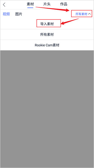 2. 点击【所有素材】→【导入素材】,选择本地视频或照片。