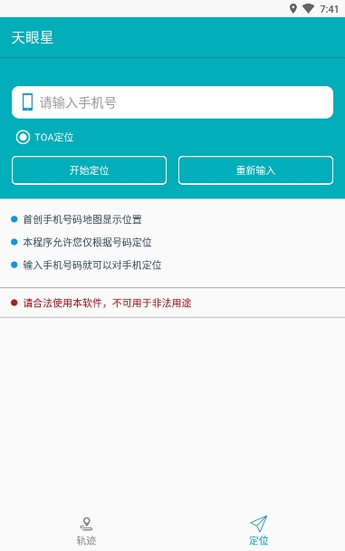 天眼星app是一款超级强大的手机定位工具,可以通过输入手机号来查询相关的位置信息,注意必须是手机号处在联网环境下才能进行定位,可以看到号码的在线状态,够帮助用户进行手机找回或者找人,欢迎广大用户下载使用!