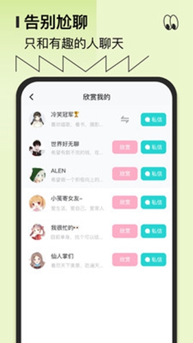 2、线上聊天都是智能匹配的,不会有尬聊的情况发生,只和有趣的人聊天;