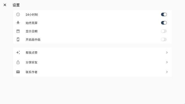 2、设置:用户点击软件内右上角设置的图标,可以进入设置界面,可以设置时制、亮屏、日期等。