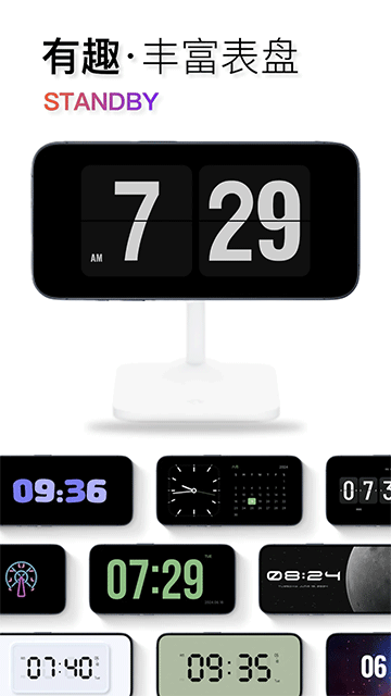 1、桌面时钟主题:全屏翻页动画,经典动态翻页时钟、简约表盘时钟、极简数字时钟等多种样式任意挑选
