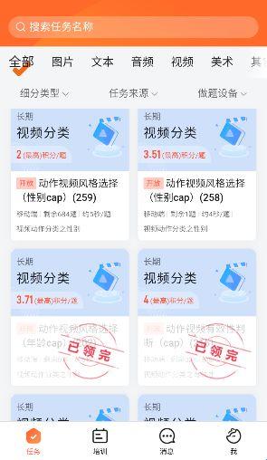 A:目前平台的任务以在APP端为主,可以先在APP端【培训】板块做培训题,获得能力勋章(需做够题目数量才可以应用,不是刷几题就可以做了)。之后再去【任务】版块做众包题目。