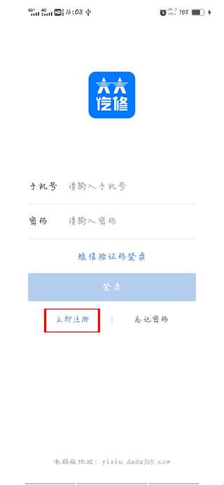 1、先从本站下载大大汽修,打开软件,点击立即注册。