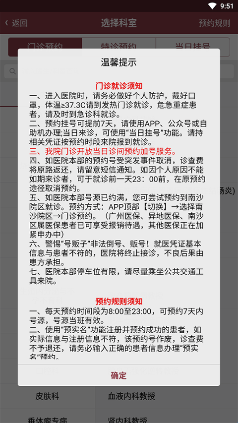 2、了解门诊就诊通知及预约规则。