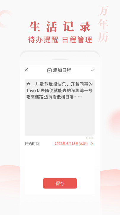 ·日程记录:快速添加日程提醒,帮助您记录重要日程,避免遗忘