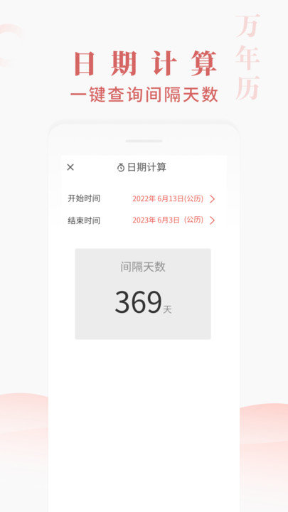 ·间隔天数:立马计算出任意两个日期之间的间隔天数,无需再翻日历掰手指头,方便快捷