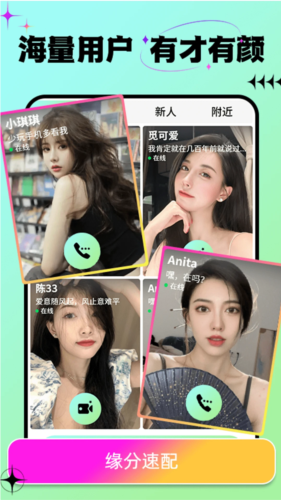 3、支持缘分速配,根据个人的交友需求,为你推荐相关的。