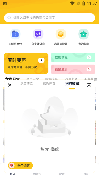 3、添加收藏你想使用的声音,到时候直接可以使用。