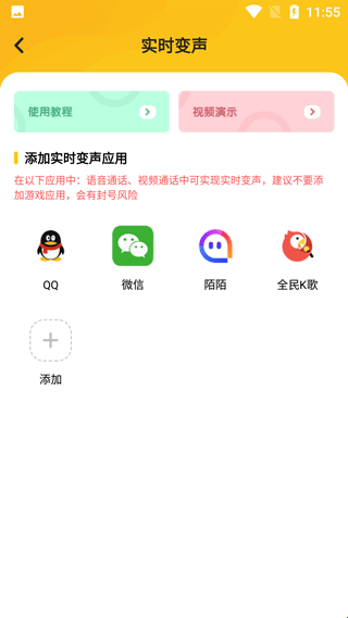 2、然后在变声器页面打开或者添加你想要的实时变声的应用;