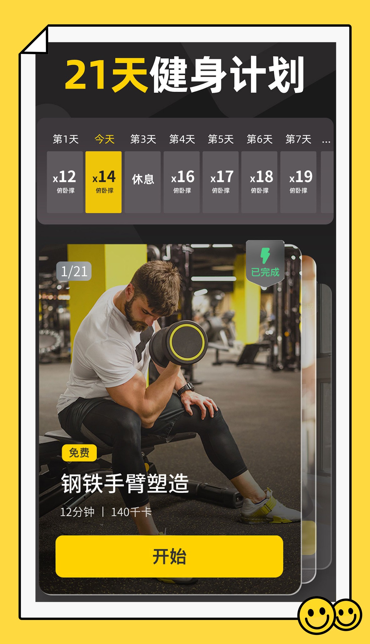 【一键开练】只需选择健身时间,点击开始”,即刻感受健身的快乐!