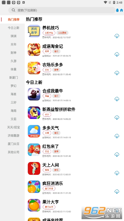 2、系统每天都会给你推荐很多热门的游戏资源,所有的游戏资源都是在实时更新的;
