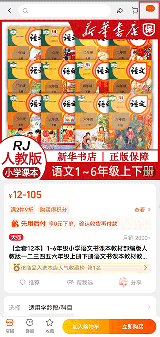 4、首先在第三方购物平台的商品中,点击右上角按钮