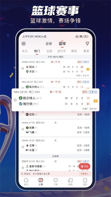 实时更新比赛情况,不再现场也能实时知道比赛比分。