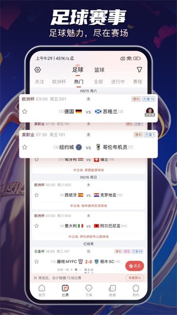 1、打开软件进入首页可以看到很多热门赛事。