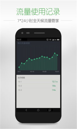 2、应用限流,合理规划,超流提醒,流量清单,使用详情,详细记录。