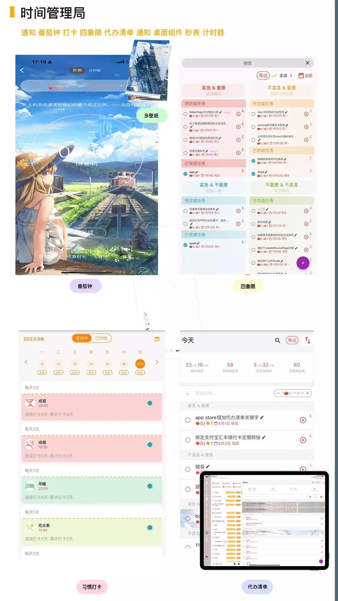 时间统计分析:应用软件可以记录用户的时间使用情况,生成统计图表和报告。