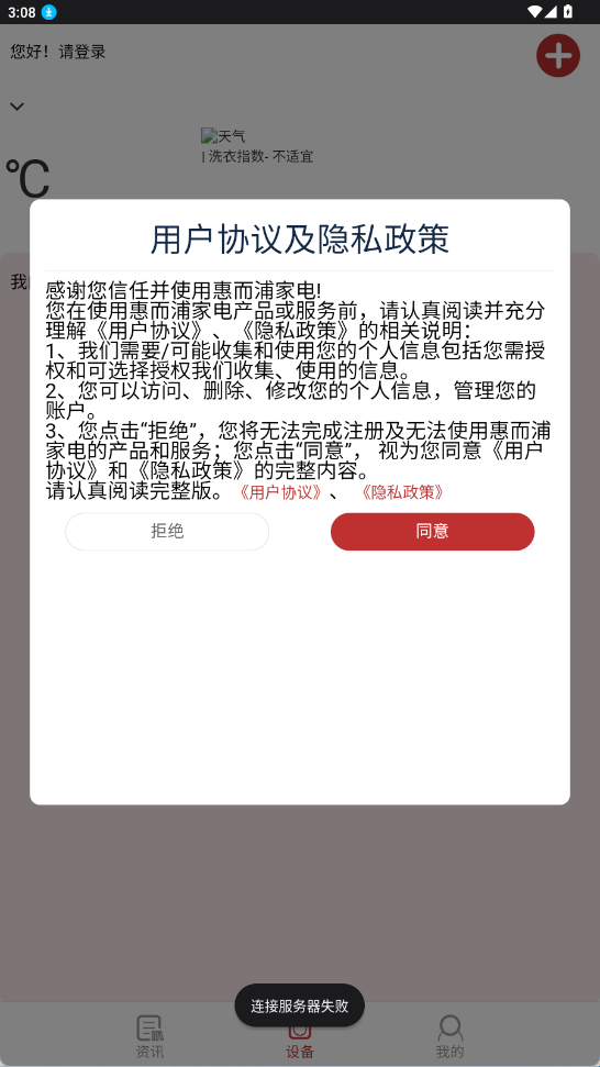 1、在烧荒下载好“三洋空调遥控器手机版(三洋家电)”,同意用户使用协议