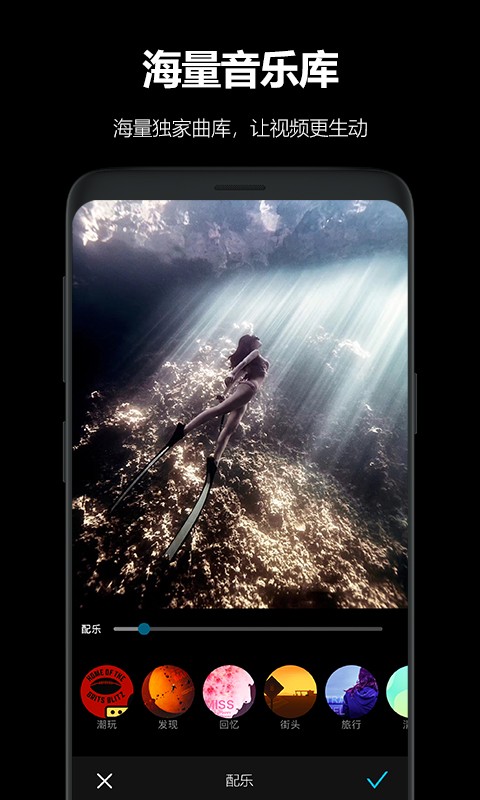 3、海量音乐库:海量独家曲库,让视频更生动。
