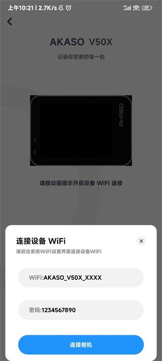 6、这时你只需要前往系统wifi设置页面连接设备wifi,点击连接相机等待片刻就能连接成功。