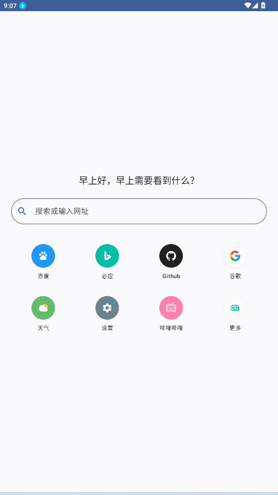 在烧荒网下载轻览二次元浏览器;进入软件后,选择一个搜索引擎;