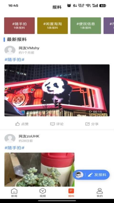 5、在“圈子”界面你将自己身边的精彩事件发送到软件里面,收获评价