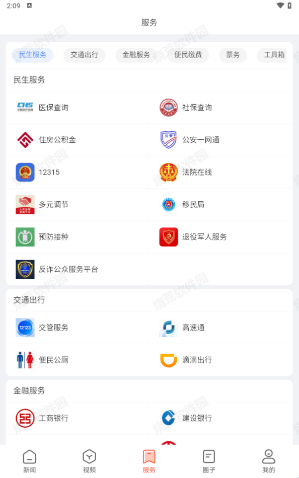 4、在“服务”界面可以看到各种民生类的服务项目,一个软件就可以搞定