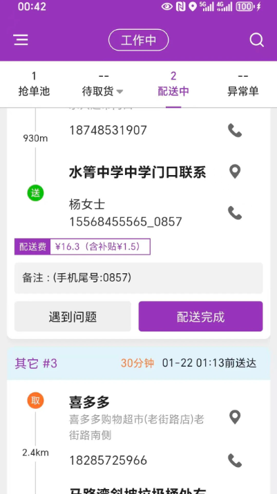 3、异常上报:配送过程中如遇问题可快速上报,系统协同客服跟进处理。