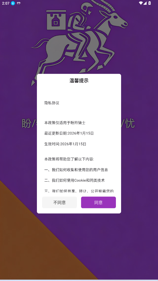 2、同意用户使用协议