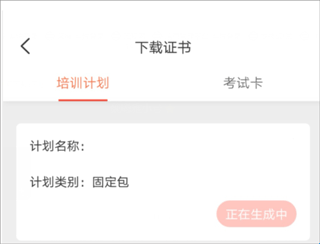 4、生成完毕,相应模块的计划或考试卡下方会显示状态为:“下载证书”以及“重新申请”,点击下载证书即可获取电子版证书。