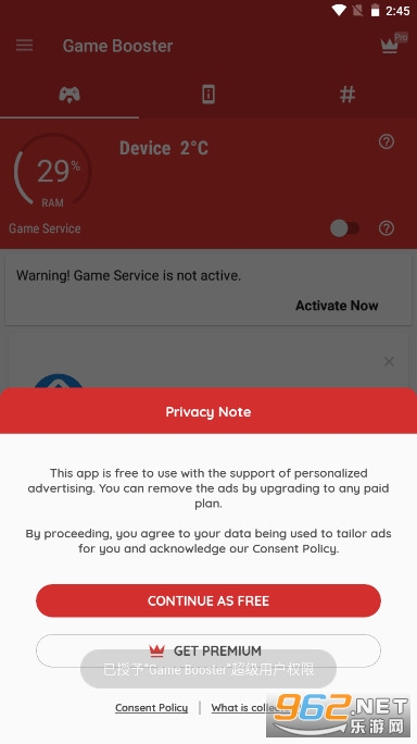 &8226;使用GameBooster模式,您不会因为将CPU锁定在设备允许的最大频率而影响性能。