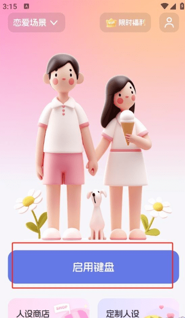 1、在本站下载安装luckey键盘并打开,点击恋爱场景