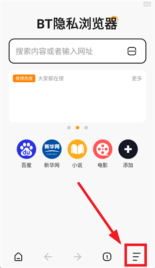 2、进入后点击如图右下角按钮BT隐私浏览器app点击无痕模式。