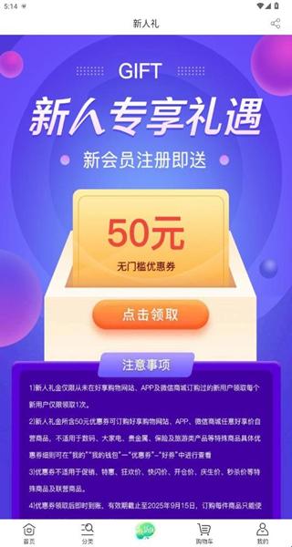 3、用户可以在平台里领红包进行购物,节省更多的钱,优惠的进行购物。