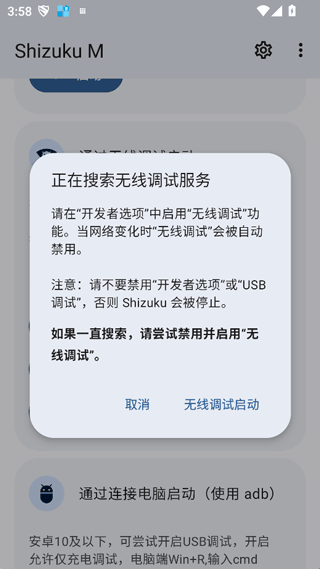 1、安卓10以上系统可以打开无线调试功能,然后输入配对码即可连接,其与Shizuku的激活使用一样.