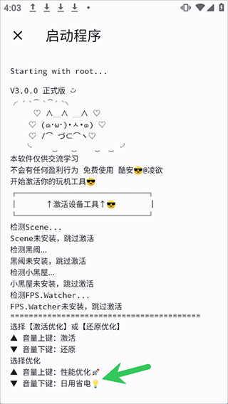 2、接着点击启动按钮进行启动,按下音量上键进行激活.