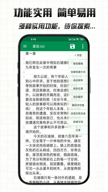 很简洁好用的一款txt文本编辑器,文件编辑器X手机免费版,支持保存位置,方便用户下次编辑时直接查看,还可以替换文本的内容,很清爽好用,没有广告,支持自动保存,自动翻页和添加书签等设置,非常不错的手机文本工具,有需要的朋友可免费下载使用。