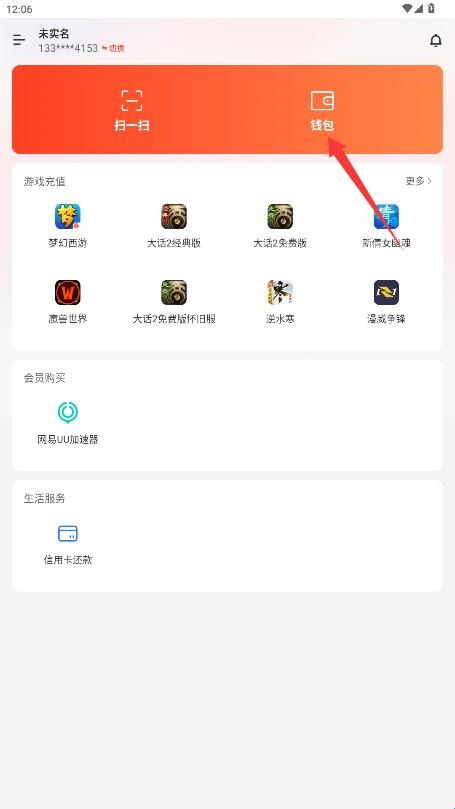1、打开网易支付应用后,在首页找到并点击"钱包"选项,进入账户资金管理页面。