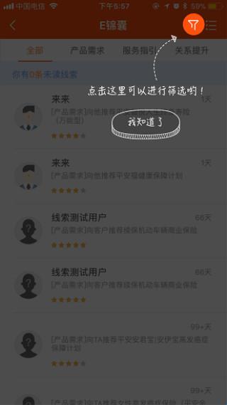 3、口袋e行销以使代理人展业更便利,比如附近的客户功能,可以方便的把周边客户,一次性面访到位,节约了代理人的时间。