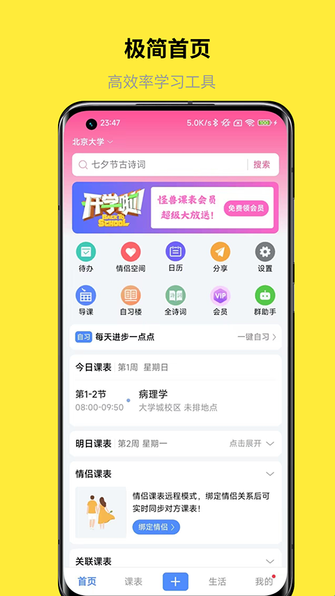 4、人性化功能设计:待办事项管理、情侣课表共享等特色功能,充分考虑到了用户的实际需求,让学习生活更加丰富多彩。