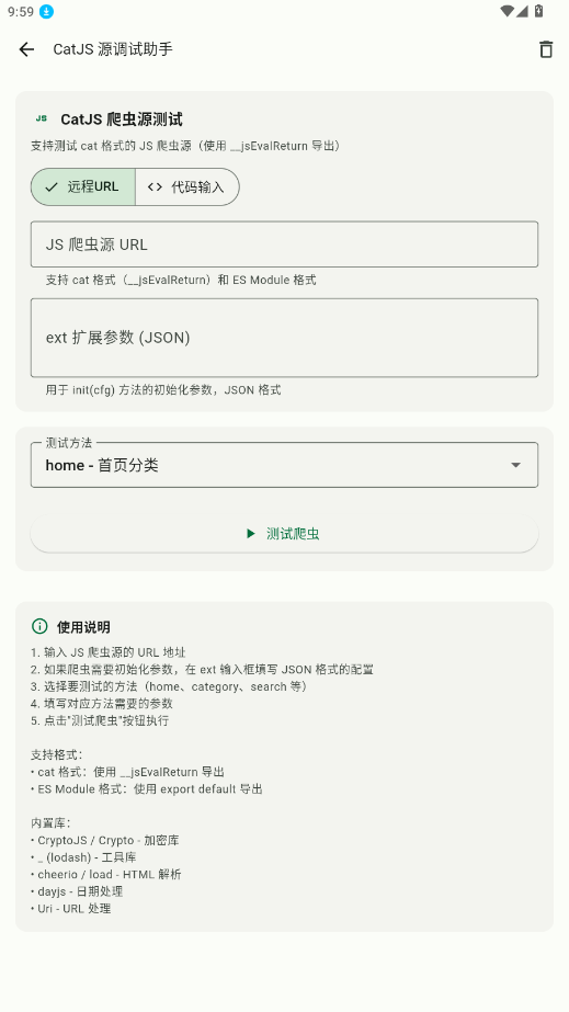 2、如果爬虫斋要初始化参数,在ext输入框填写JSON格式的配置