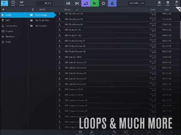 2、提供了超过300多个midi和音频的loop,用户可以随意的选择使用;