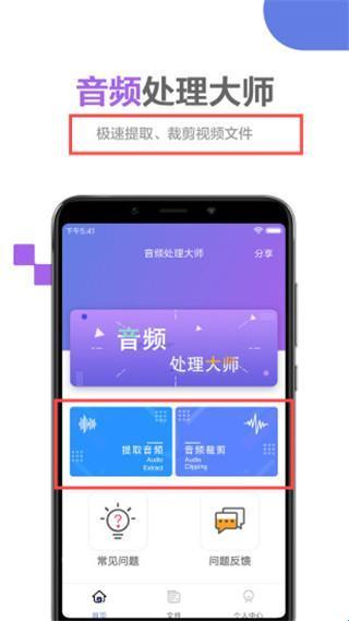 1、打开应用点击【提取音频】或【音频裁剪】处理文件。