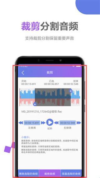 2、音频裁剪:可裁剪分割音频文件,去除无用内容,只留精彩部分。