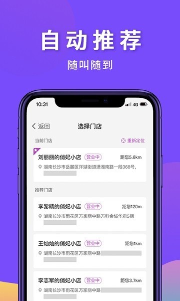 2、自动推荐随叫随到:每隔2公里就有一家俏妃小店。打开“俏妃小店”,系统自动推荐附近小店进行服务,客户自主选购下单,店长或店员配送上门完成服务(姨妈突访也不怕)。